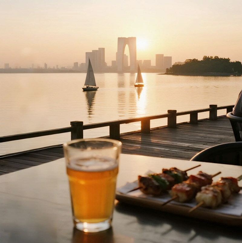 每周五至周日,落日烧鸟微醺市集准时开摊,烤串香气与湖风交织;岛屿消夏碰头会把露天电影、民谣Live、宠物友好市集搬到岛上,吸引大量年轻人携宠上岛。