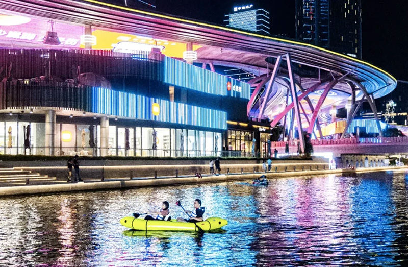 “近期水上运动带来的人流增长十分明显,周末客流量比之前提升了50%左右。”时代广场成都厨房总经理杨阳表示。许多市民在结束水上项目后,会选择在周边咖啡座休憩、文创市集购物或餐厅用餐,完整的水岸消费链正在形成。