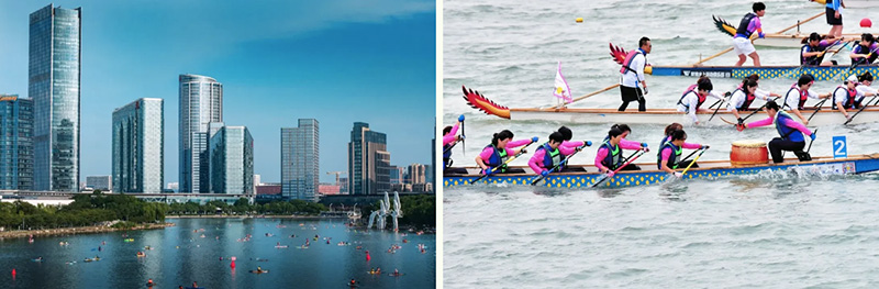 独墅湖高校桨板争霸赛、金秋龙舟赛展现动感与活力。