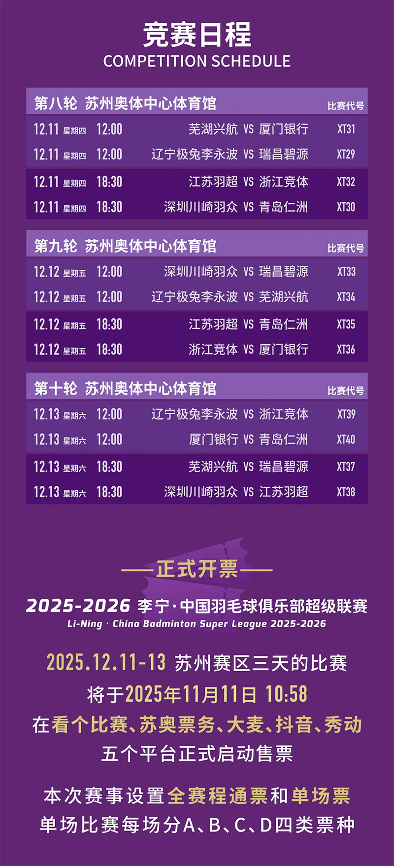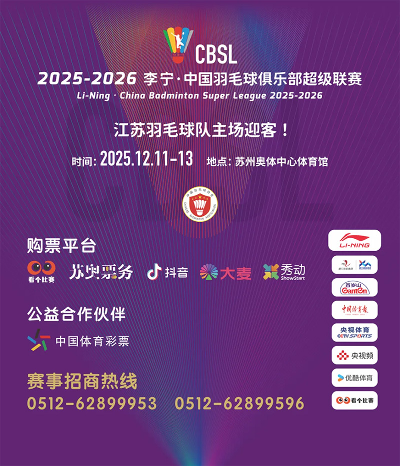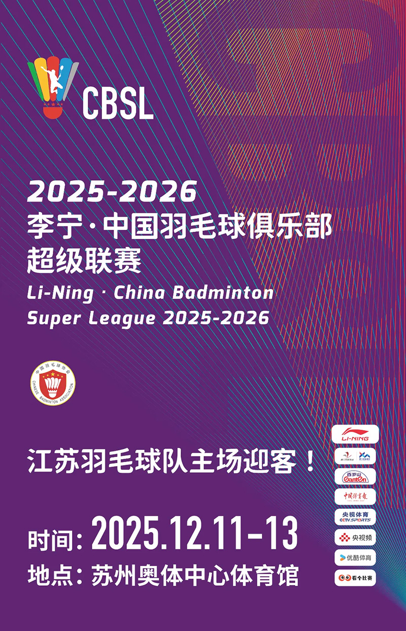 开票!2025-2026中国羽超联赛,12月11日-13日,江苏羽毛球队主场迎客