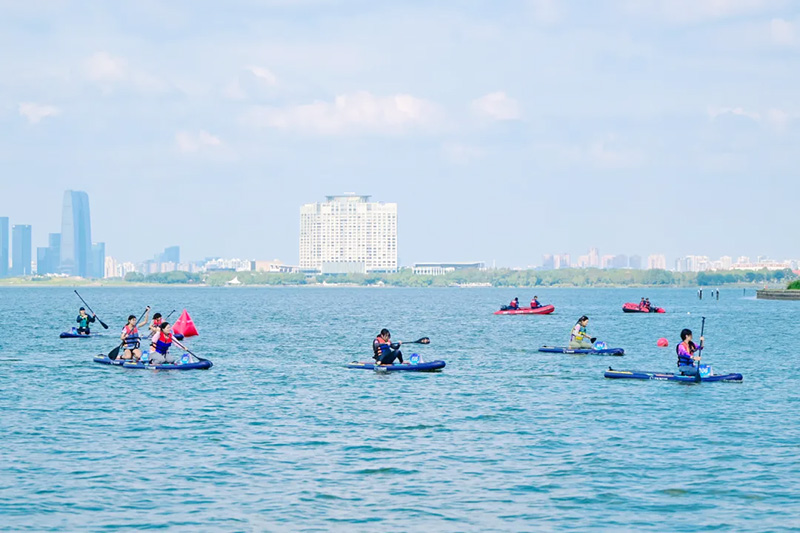 “今天天气条件很好,湖面平静,非常适合桨板运动。”来自西交利物浦大学代表队的队员表示,队伍平时会开展平衡性训练、直线划行等练习,希望能在这场比赛中发挥出最好水平。