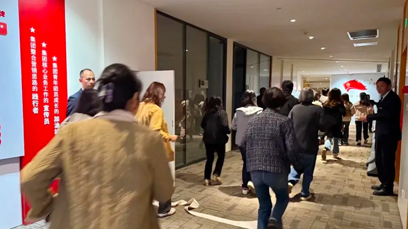 “火情”突发!办公区域模拟起火后,消控中心接警后即刻行动、预案同步启动。保安快速到位,引导员工沿安全通道撤离,各环节高效衔接,3分钟内实现全员疏散集结。这场紧张有序的演练,实打实检验出大家的应急处置硬实力。