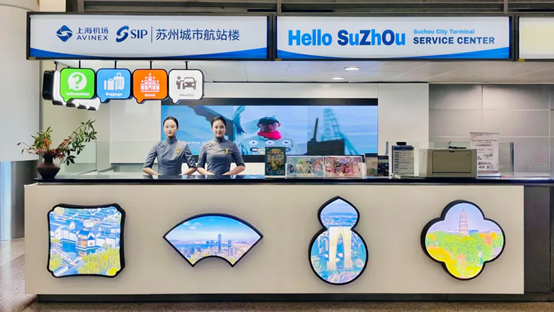作为苏州对接上海国际航空枢纽的重要平台,该服务中心位于上海浦东国际机场T1、T2航站楼国际到达区,与位于苏州工业园区的上海机场苏州城市航站楼共同构建起“双向服务闭环”,实现了旅客出行的无缝衔接。同时,它也成为苏州城市形象在上海空港的“前置窗口”,向全球旅客展示苏州开放、友好、高效的国际化形象。