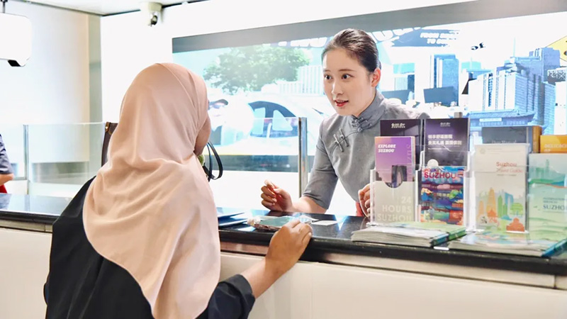 配备中英双语服务人员,全面介绍苏州文旅资源与出行指引,确保旅客咨询“一跟到底”。