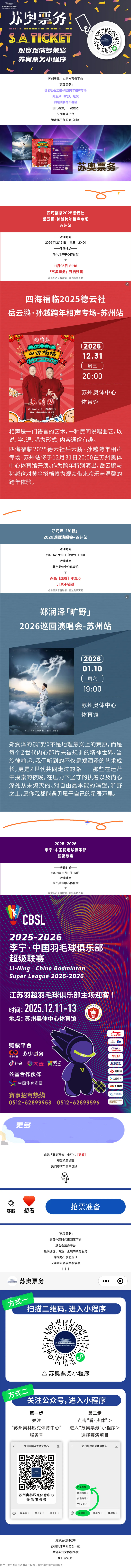苏奥票务“包”揽欢乐!岳云鹏跨年相声、郑润泽「旷野」、羽超联赛苏州赛区,一键触达!