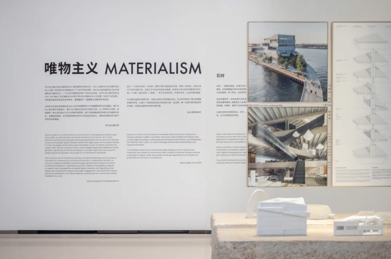 作为BIG在中国的首展,“BIG:唯物主义”邀请观众回归建筑最根本的物质属性,展开一场关于建筑本源与未来的旅程。展览由两大核心章节构成:第一章节聚焦于十种基础材料,通过特制的材料展台、3D打印建筑模型及详细说明,解析BIG在全球范围内对这些材料的创造性运用。第二章节为“苏州当代美术馆特别展区”,通过大型建筑模型和四个主题展台,深入解读BIG如何从苏州园林中汲取灵感,将传统空间韵味与现代建筑语言、北欧设计理念与苏州地域文化相融合,展现了务实主义与乌托邦理想调和的设计哲学。