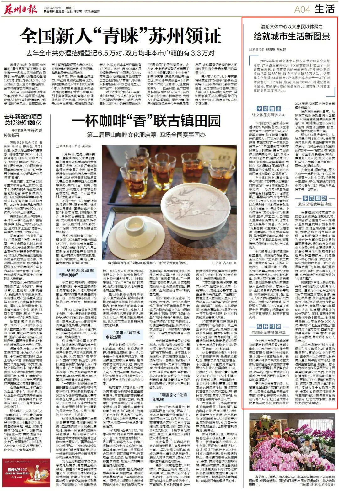 《苏州日报》漕湖文体中心:以文惠民 以体聚力 绘就城市生活新图景