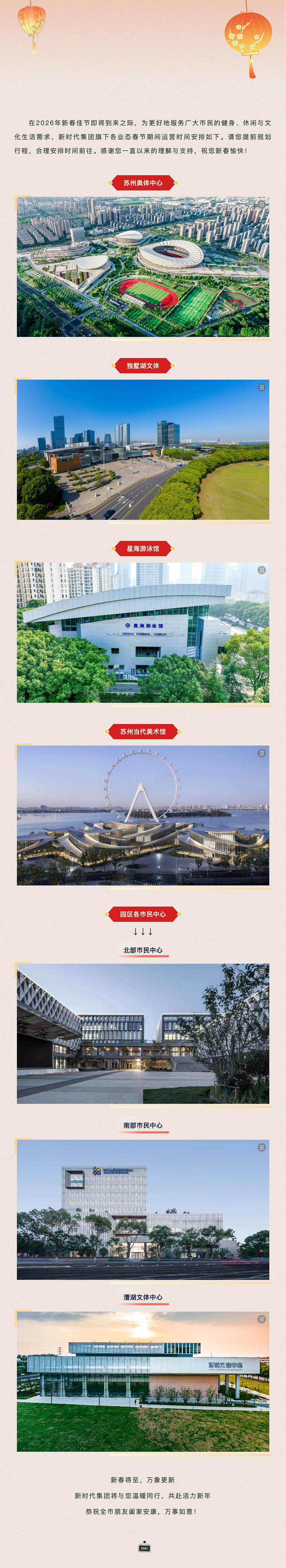 园区体育场馆、苏州当代美术馆、各市民中心春节营业时间安排