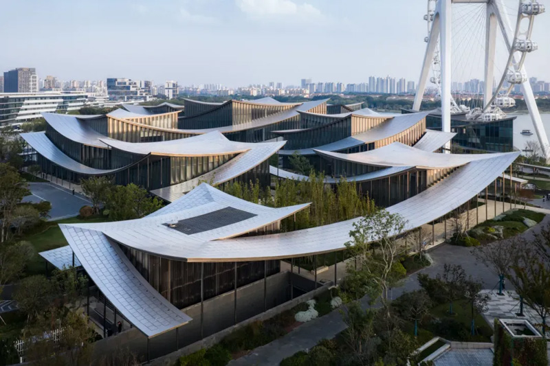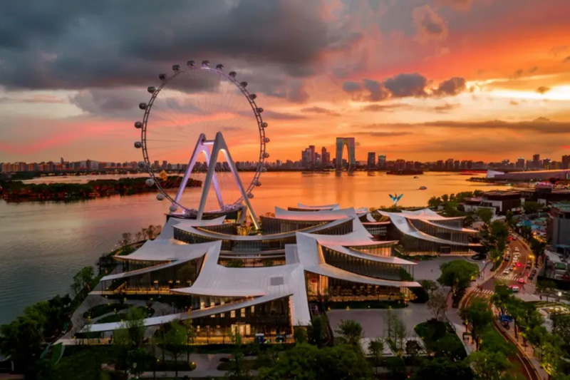 美术馆位于苏州工业园区湖东CBD片区,紧邻金鸡湖摩天轮,地理位置得天独厚,临湖而立,风景优美。场馆占地面积4.88万平方米,总建筑面积5.95万平方米,展厅面积约1.13万平方米,建筑设计由国际顶级建筑事务所BIG担纲,从功能配套到建设标准,均比照国际高标准专业艺术场馆。