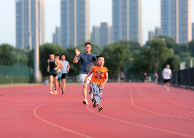 统计数据显示,每天5点至7点,晨跑人数占当日总人流量的35%左右,以25-45岁的运动爱好者为主,其中不乏专业跑者的身影;17点至20点是全天最热闹的时段,人流量占当日总流量的45%,市民在这里锻炼强身,孩子们的嬉戏奔跑洒落一地笑声。这里的跑步爱好者们还自发组建了各式各样的跑团。去年,奥体中心依托跑道开展了近20场群众健身活动,服务近万人次。